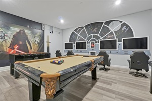 With Star Wars-themed decor enhancing the ambiance, our game room is the ultimate playground for fans and gamers. Our family has spent countless hours making memories here, and we know your family will, too. Every corner is crafted to thrill and entertain, inviting you to enter a galaxy of fun and adventure where the excitement never ends!